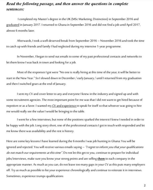 Solved Read The Following Passage And Then Answer The Chegg Com